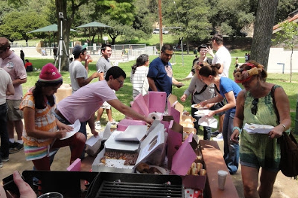 Los Angeles donut fans from across the Southland brought a dozen from their fave local donut shops. This is the greatest idea ever because L.A. is so big, there’s no possible way you can drive out to all of these places to try so many donuts. So here they all were in one place, in pretty pink and white boxes, stacked, prepped and ready to be devoured.