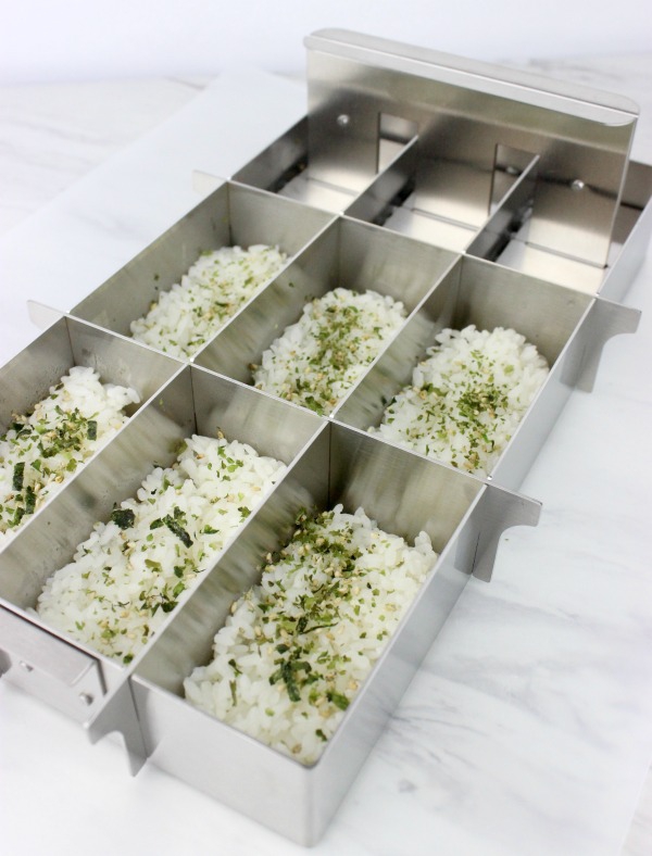Every holiday season she and I both have huge traditional Japanese parties—hers for mochi-making and mine for Japanese New Year—and both of them involve lots of cooking. When you’re cooking for 20-50 guests, mass amounts of Spam musubi is bound to be consumed. This new contraption makes that production line go a whole lot more quickly.