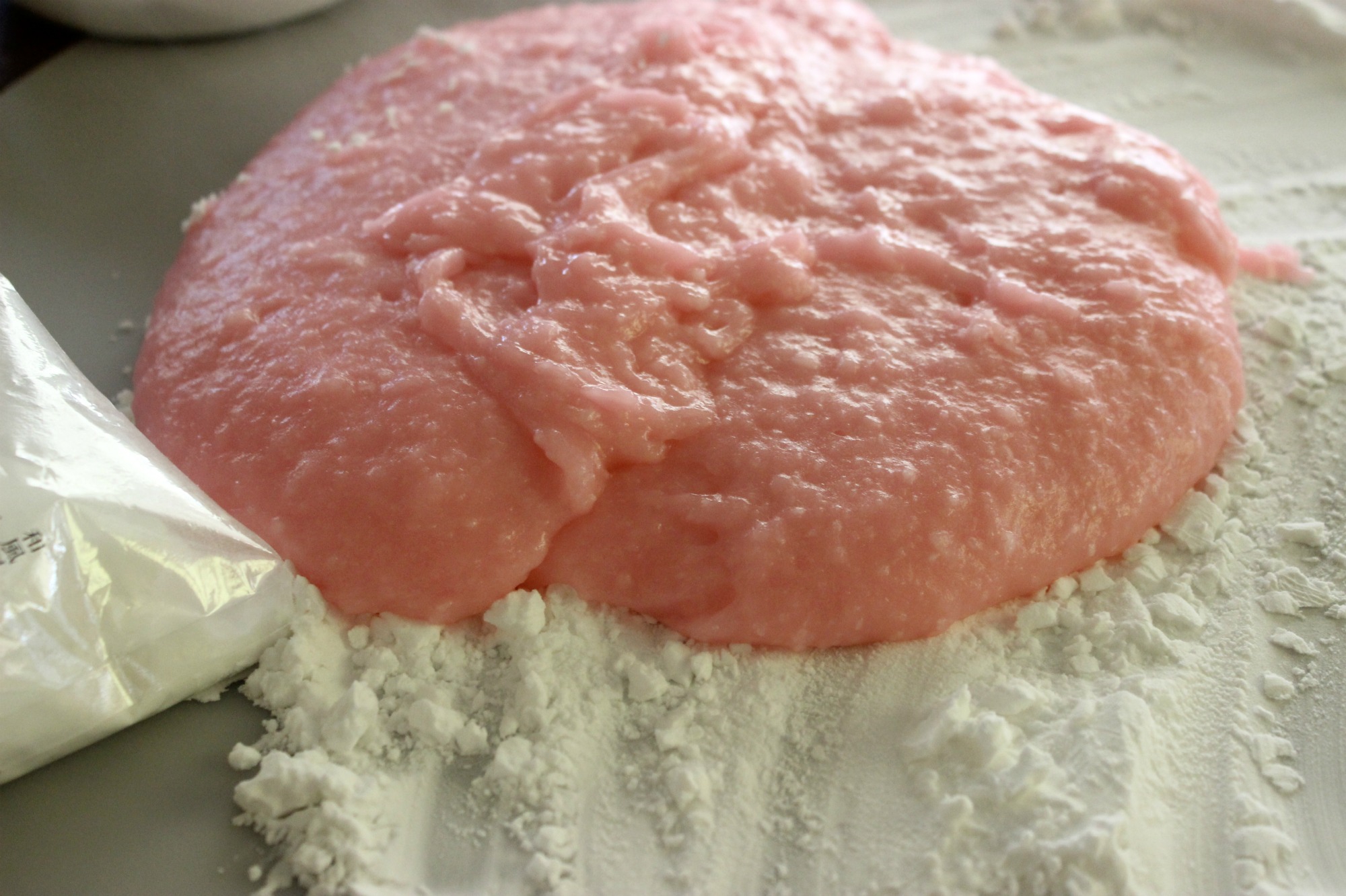 Step 1: Ready a large clean surface by sprinkling liberally with potato starch.