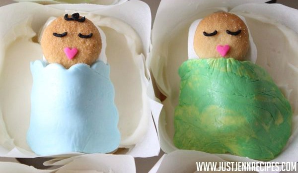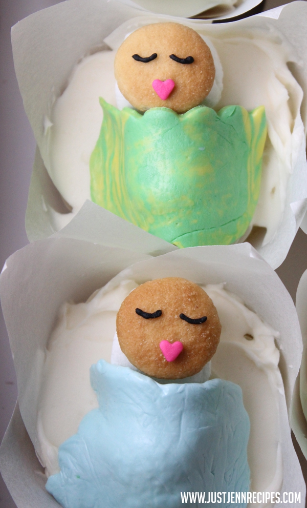 I make a lot of baby shower cupcakes, usually using Starburst as baby blankets and sometimes there’s even a lightsaber or two. The cupcakes are always a hit at showers because who can resist eating an adorable baby made out of candy and cookies?