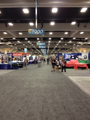 Since I’m always at my table waaay back in Small Press I rarely get to venture to the big booths, that’s why my favorite time of day is the early morning before the Hall is open to the public. All is quiet, just the low hum of the air conditioner kicking in. This is the time to truly marvel at the beauty of the Con and this is my view, a totally empty, walkable exhibit hall. Heaven.