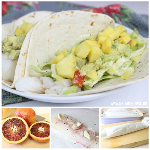 There’s an abundance of blood oranges lately and citrus makes it easy to add a lot of flavor to baked or grilled fish. If you’re missing that signature crunch of a fried fish taco, a light slaw is an excellent stand in. Top it all off with guacamole because well, guacamole makes everything better.