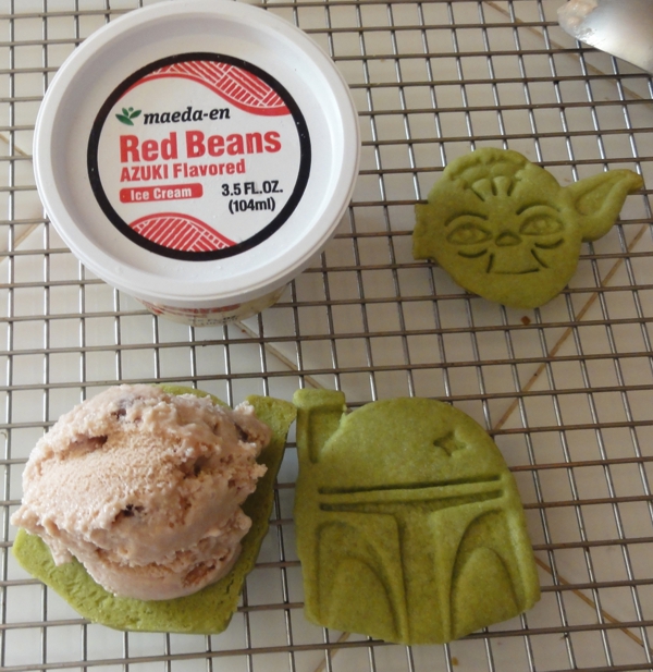 When a Mandalorian warrior goes out for Japanese food, obviously he wants Green tea cookies + red bean ice cream sandwiches for dessert. Hm, is that not Star Wars canon? Let’s just pretend it’s implied because these Boba Fett Ice Cream Sandwiches are too good to pass up.