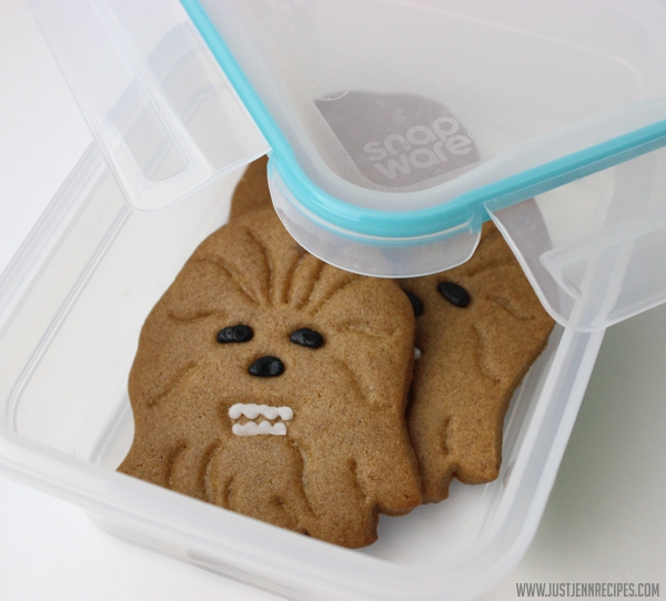 This Chewbacca cookie is no exception. Flavorful brown sugar gives him that trademark color and a simple pipe of black frosting for eyes gives him that special Wookiee twinkle in his eye. With just a hint of simple piped white frosting, the tiny growl-y teeth is what makes the recipients of these cookies ooh and ahh. Or…Arrrggghhnnn. Grrrhn. Gahr.