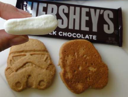My recipe for homemade graham crackers is simple and keeps well in the freezer if you want to make the dough ahead. The trick to making these of course is the Williams-Sonoma Stormtrooper cookie cutter. Once the cookies are baked you’re ready to assemble.