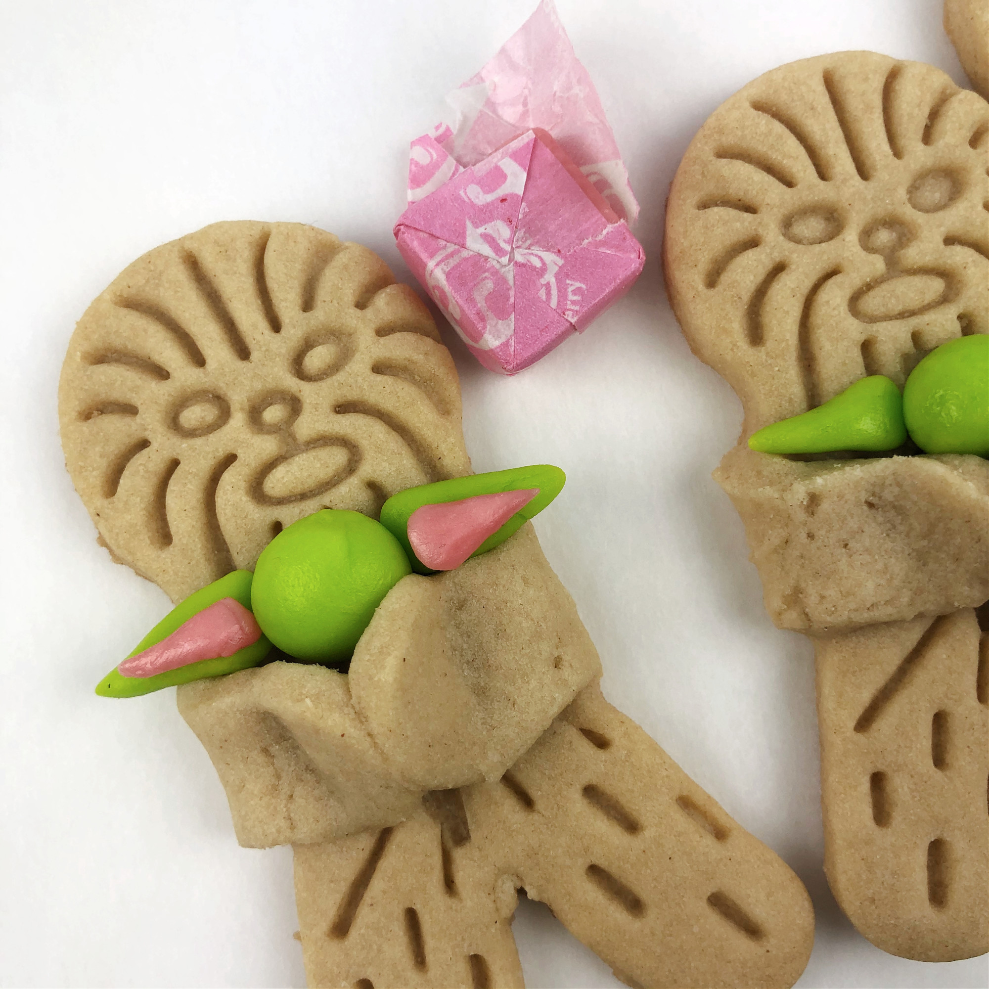 I’ve previously made The Mandalorian and The Child Hug Cookies, and Wookiee Holiday Hug Cookies, so it just made sense to have a Chewie cookie holding onto a fondant foundling. Where are these two BFFs headed? Who can say. I’m guessing they’re off to get two tall glasses of Blue Milk.