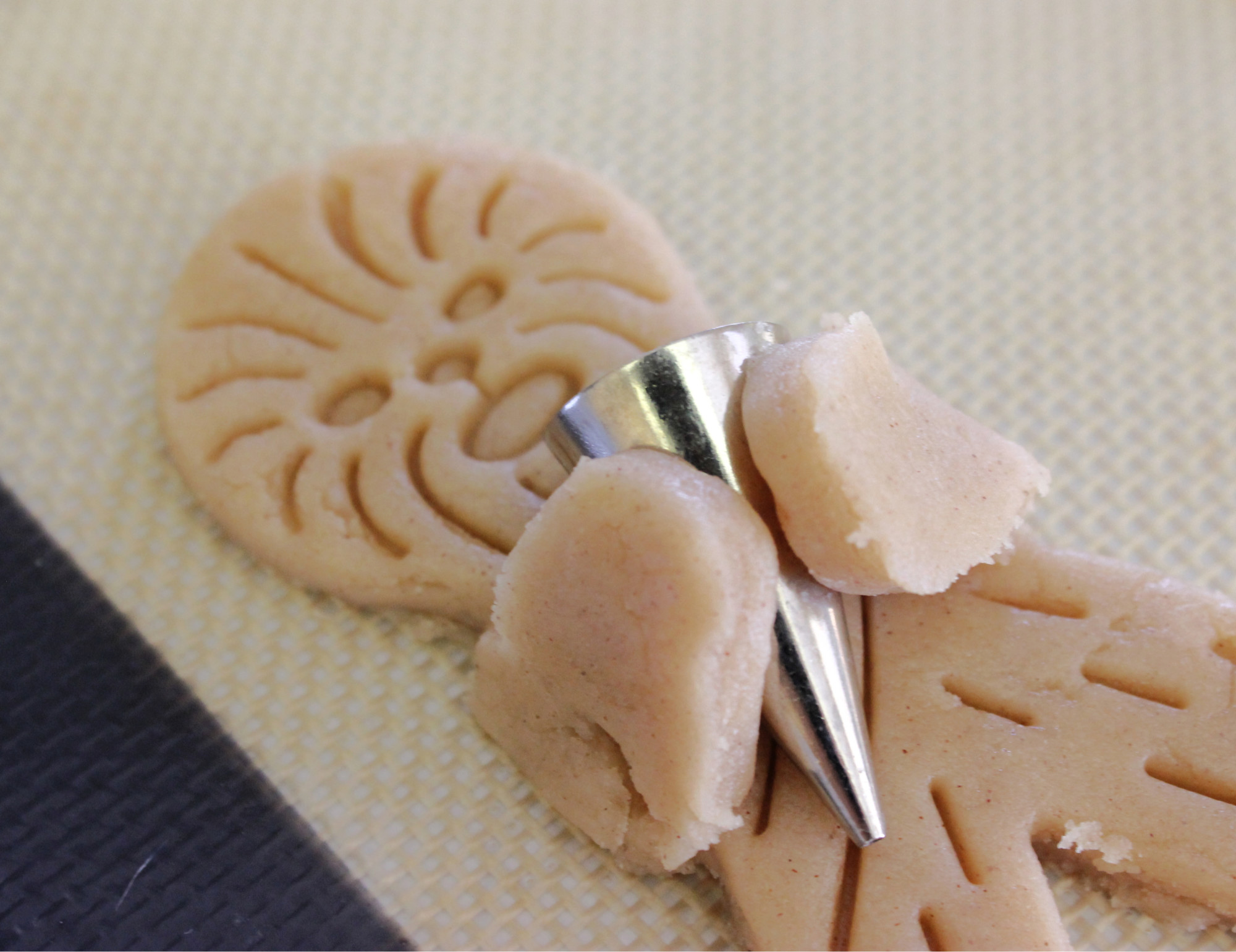 Step 7: Place a piping tip in the center of the cookie. Carefully fold the arms over to grasp the piping tip.