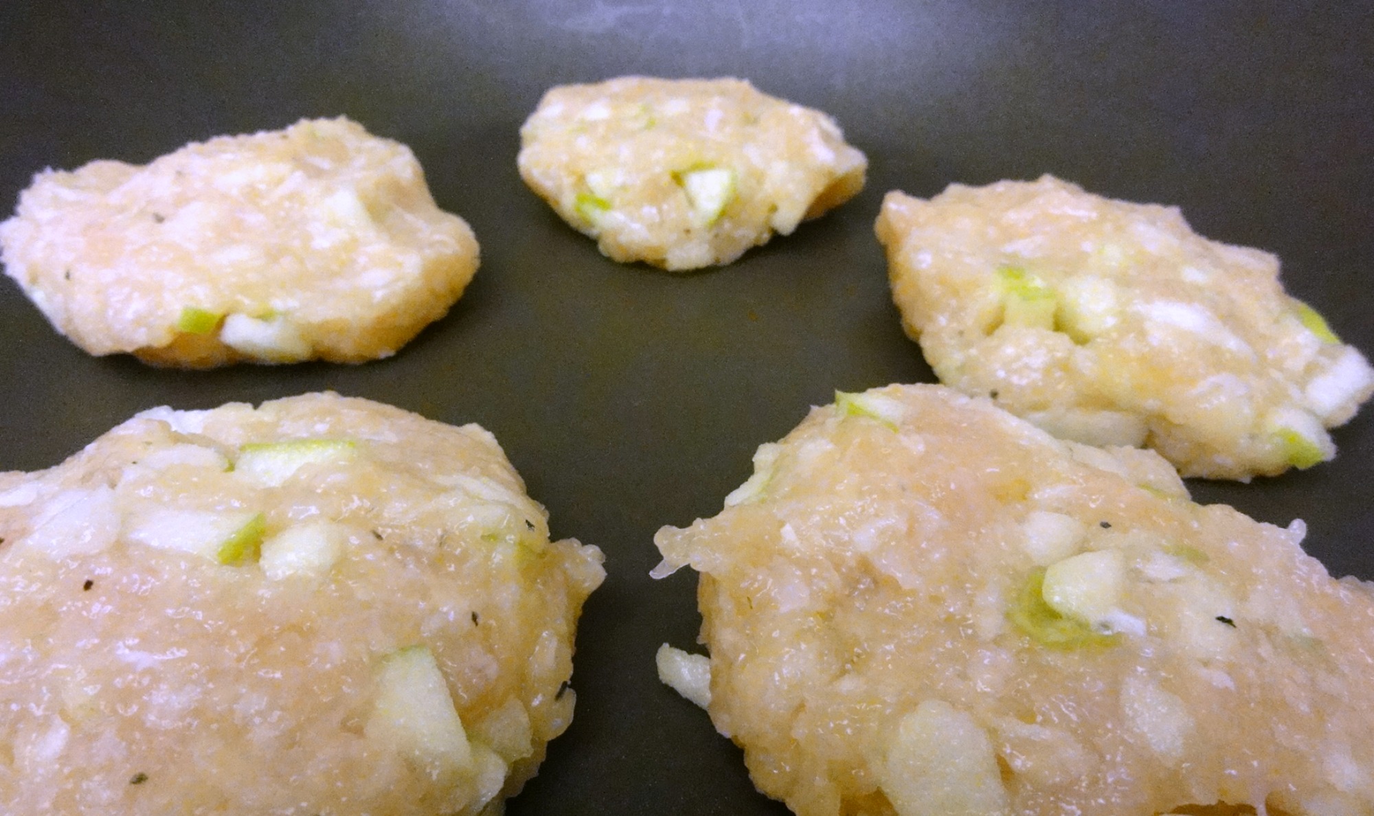 I made these for my almost 3 yr old’s first lunch at real daycare. I sent him off with 7 small patties and he came home with only two, so that means he liked them! I decided to peel the skin off the apple and then grate it so that it would be less conspicuous for my picky son. It worked! Also, my one yr old cannot chew too well yet, so the shredded apple was better for him. I am so thankful for any recipe that passes as edible by one or both of my sons–THANKS JENN!!!