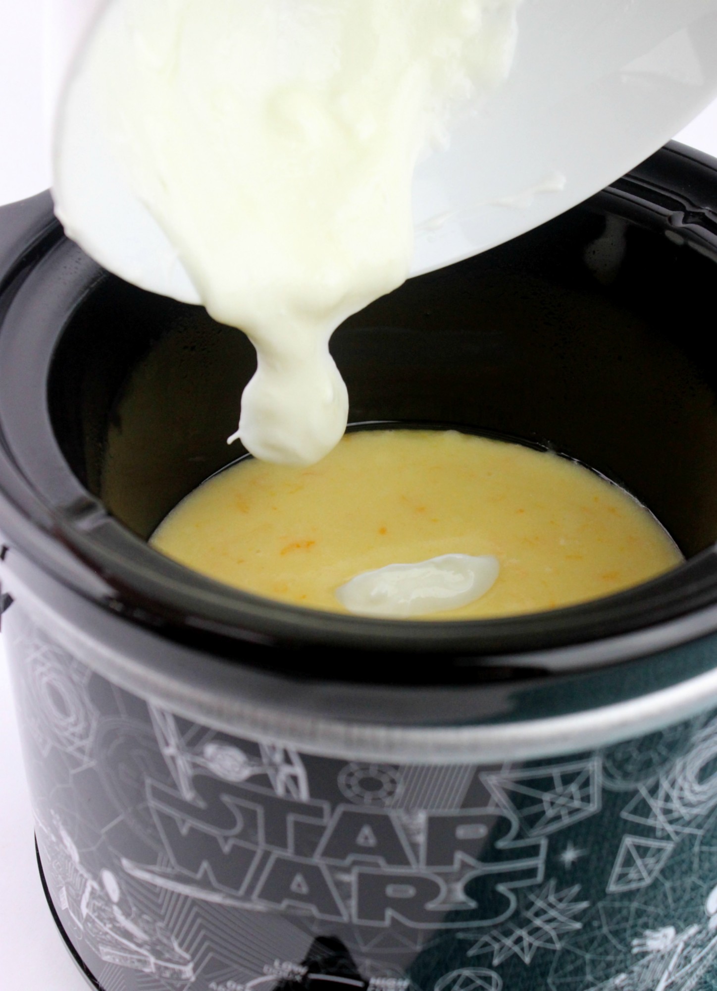 For my recipe I chose the Creamsicle Crock-Pot Cake. I’ve always wanted to make a crock pot cake but have been wary of the possible results. Since the idea of a giant slow cooker full of cake sounded a little too overindulgent even in quarantine, I halved the recipe and used my trusty 2-qt Star Wars crock pot–it’s small but mighty.