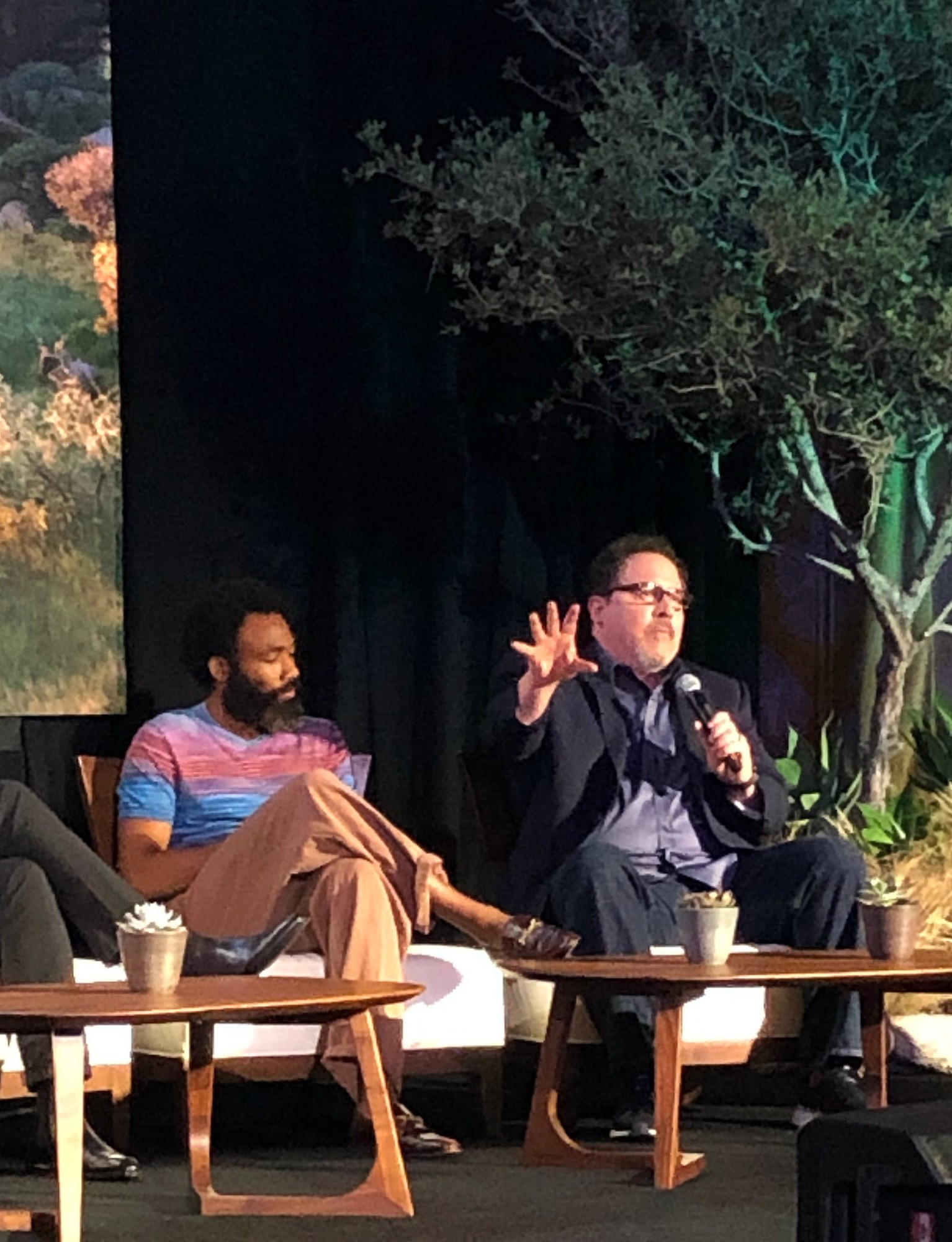 Favreau took to the stage to talk about the process along with the cast, Donald Glover (voice of “Simba”), Seth Rogen (voice of “Pumbaa”), Billy Eichner (voice of “Timon”), Chiwetel Ejiofor (voice of “Scar”), Alfre Woodard (voice of “Sarabi”), Keegan-Michael Key (voice of “Kamari”), Florence Kasumba (voice of “Shenzi”), Eric Andre (voice of “Azizi”), John Kani (voice of “Rafiki”), JD McCrary (voice of “Young Simba”), Shahadi Wright Joseph (voice of “Young Nala”), and Composer Hans Zimmer, and Lebo M (African Music Consultant / Performer).