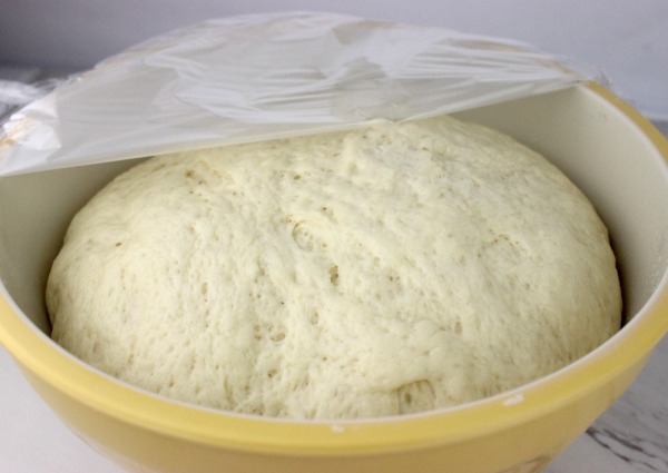 Grease a large bowl with oil and place the dough inside, turning to coat. Cover tightly with plastic wrap and let rise in a warm place for about 1-1/2 hours.