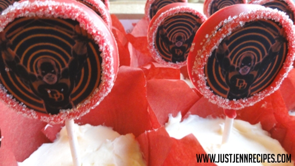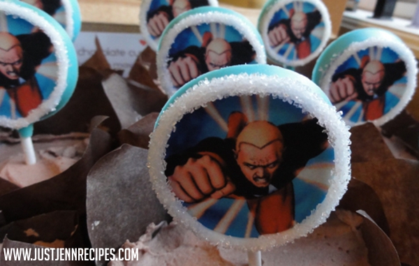 I did the same for the Irredeemable toppers, just with blue candy melts and white frosting.