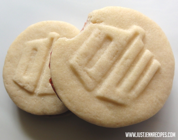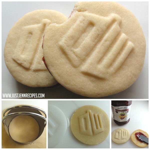Everyone knows the Doctor’s favorite snack is the Jammie Dodger, the popular fruit filled biscuit. I knew I had to make my own version to celebrate this milestone in Doctor Who history! I found these impressive Doctor Who cookie stamps on etsy from Totalum. They make great impressions of the Doctor Who logo, however they’re cookies stamps, not cookie cutters. So I used a biscuit cutter to cut out the circles for the cookies.