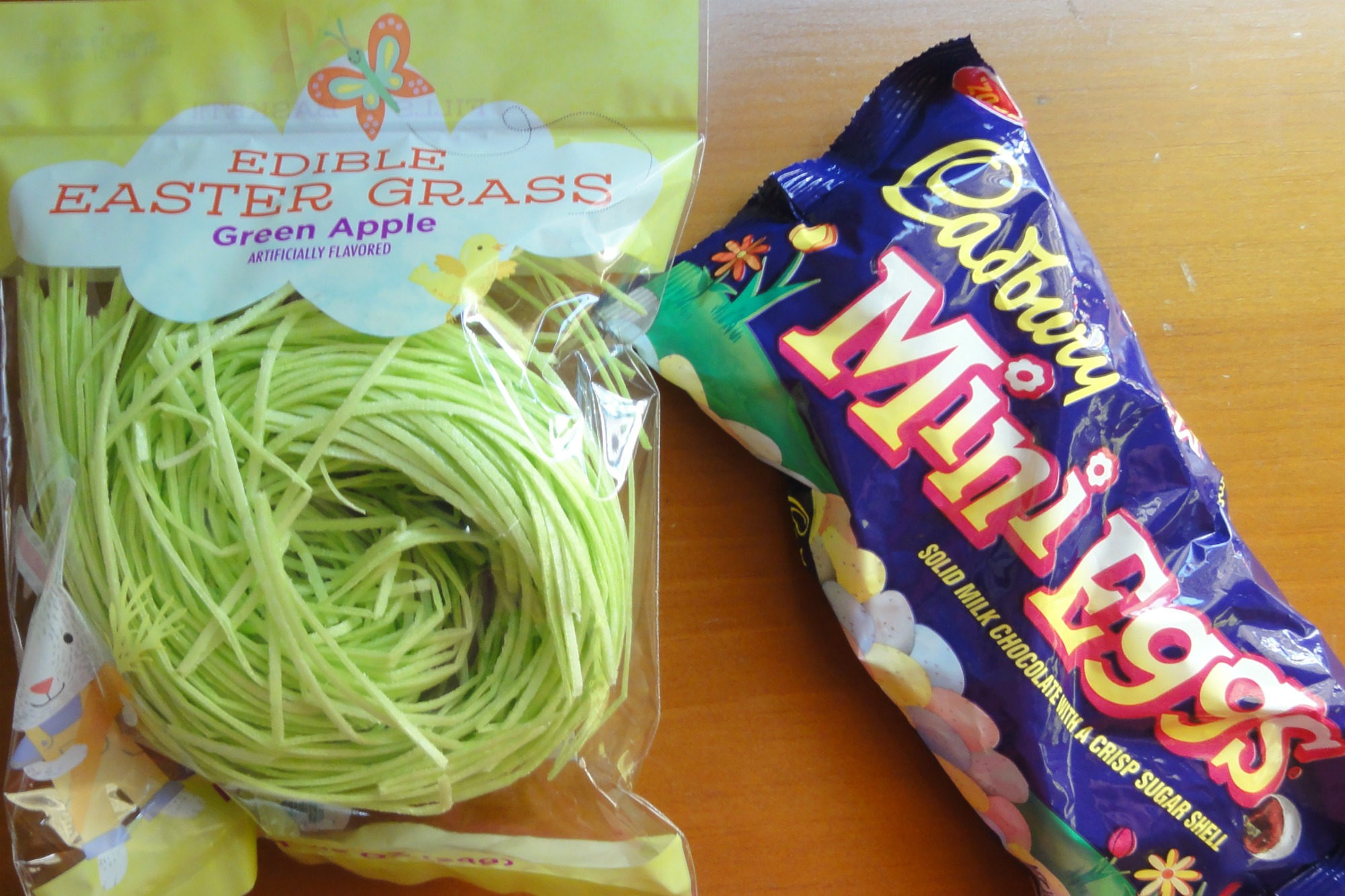 Mr. Mochi is obsessed with the Cadbury Mini Eggs, but I’ve never seen edible Easter grass. I’m intrigued!