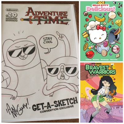 Recently my kids helped intro the lastest episode of BOOM! Studios webseries Buzz on BOOM! and The Baby got a special variant cover of Adventure Time drawn by Ian McGinty!