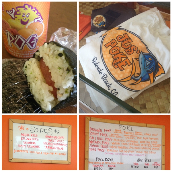 Poke is a raw fish salad seasoned with salt, soy, sesame and ogo. It can be served as a side dish or eaten as a meal, the latter taking on popularity. Poke joints are popular in Hawaii but here in LA it’s been pretty desolate, until now. Jus’ Poke in Redondo Beach opened the perfect location, a tiny shop that like the name sells Jus’ Poke! Blocks from the beach you can easily pick up a plate lunch and head to the ocean in minutes. Beach day to-go!