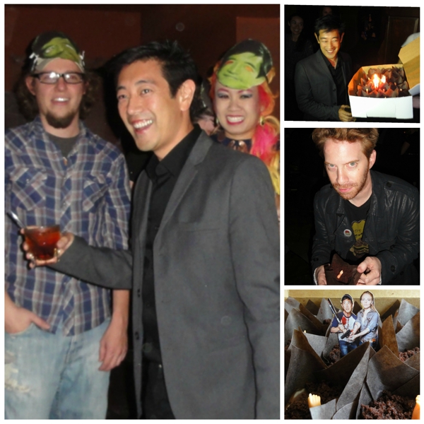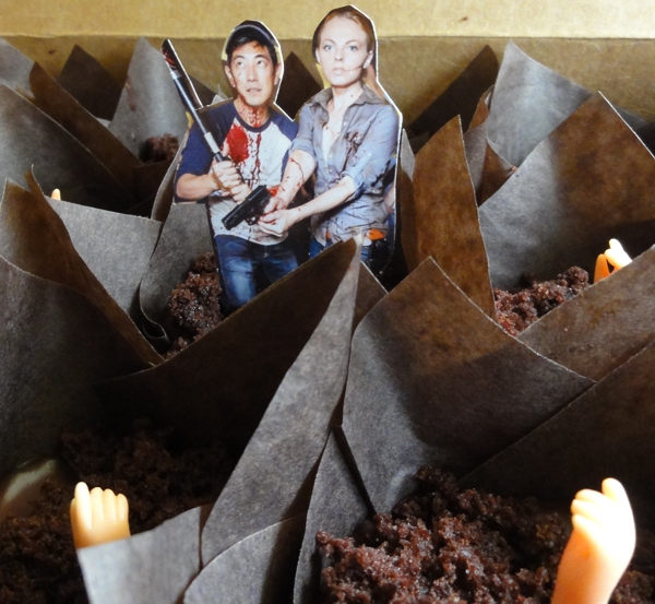 Using a picture of Grant and Jenny cosplaying as Glenn and Andrea from The Walking Dead, they sure do look scared and confused as the zombies start rising out the cupcakes to attack them. They’re just baby doll arms, guys! Wait, that’s almost scarier…Happy birthday Grant!