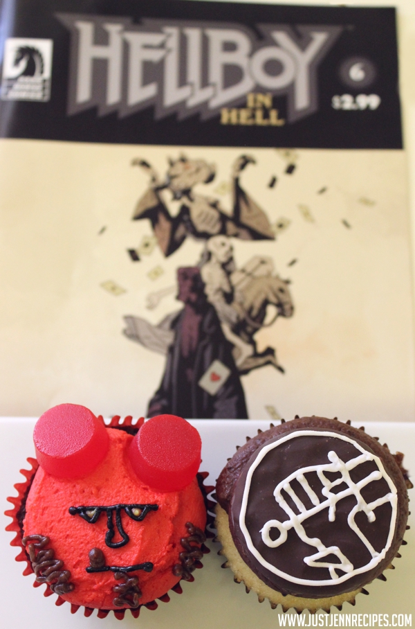 I love the cover of Hellboy in Hell #6 where there’s an Ace of Hearts card on Hellboy’s sleeve, so I added some heart top cupcakes to complete the set. It’s a sweet, sweet Hellboy world.