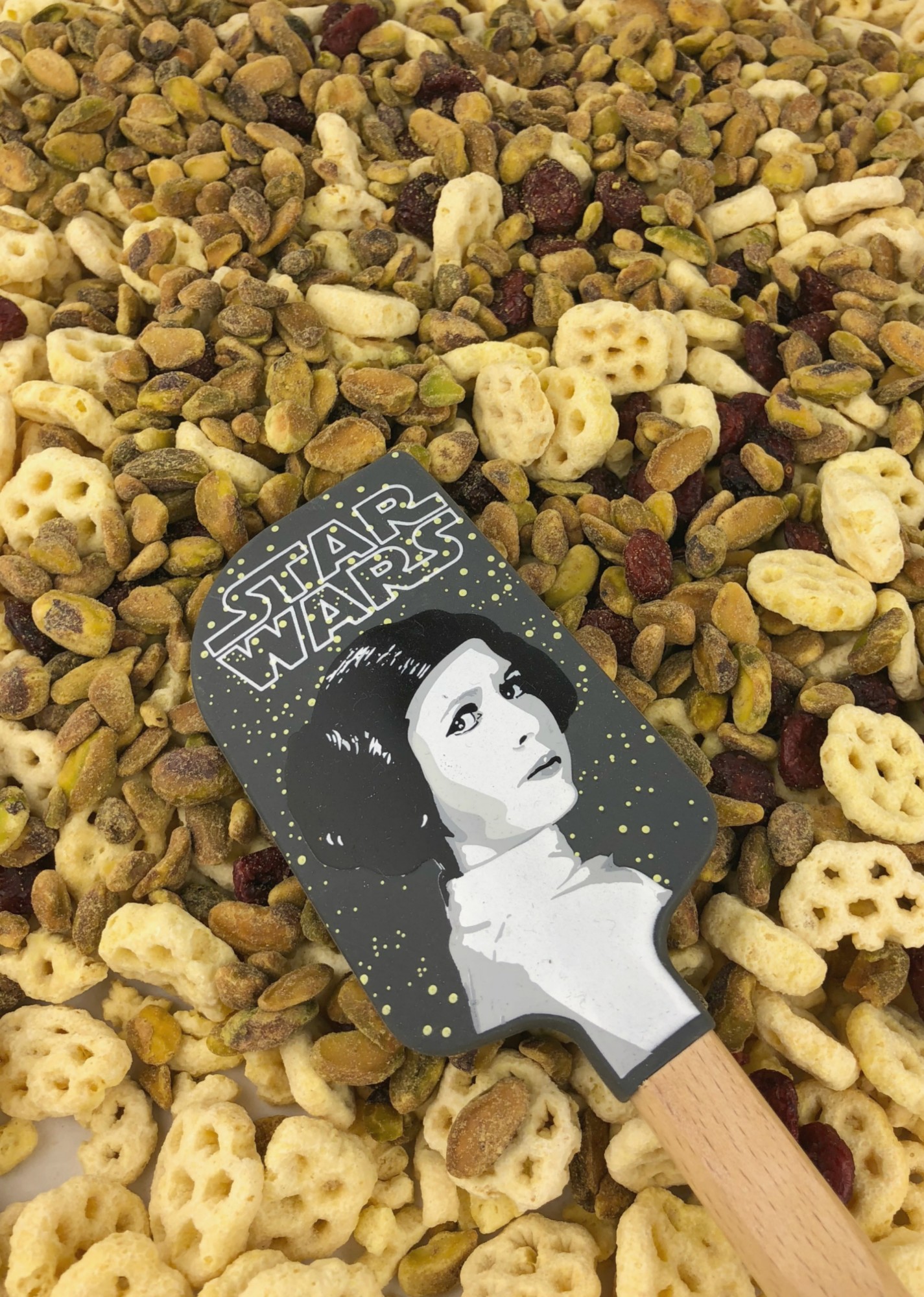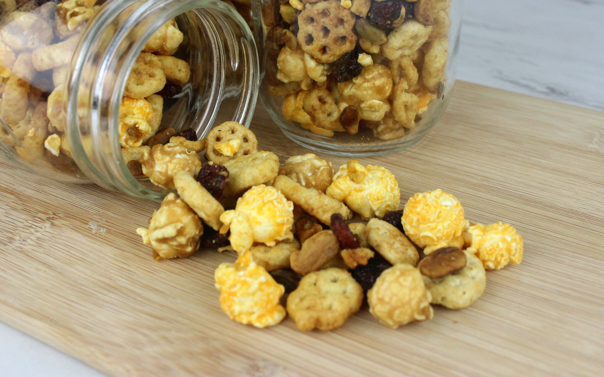 This mix combines some of my favorite things: sweet Honeycomb cereal, dried cranberries, and crunchy pistachios, plus a mix of savory and sweet popcorn. Toss it all with melted brown sugar, butter, and honey (a spectacular triumvirate) and you have yourself a stunning snack mix you won’t be able to put down.