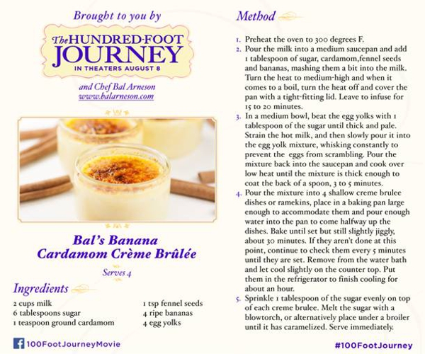 For a little French inspiration, here’s a classic Creme Brulee recipe with a twist of bananas and cardamom for added flavor.