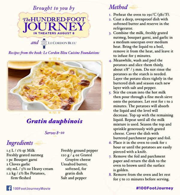 If you’ve ever wanted to have a Le Cordon Bleu experience in your own home, here’s an easy to follow Scalloped Potatoes Recipe for Gratin Dauphinois. Dreamworks The Hundred-Foot Journey arrives in theaters everywhere on August 8th!