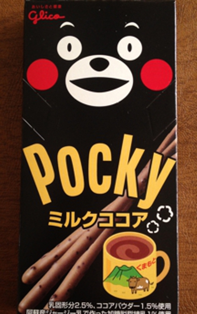 I recently saw this adorable black bear staring back at me from the aisles, turns out he’s Kumamon the mascot of the Kumamoto Prefecture. Here he is promoting cocoa milk pocky and it looks delicious!