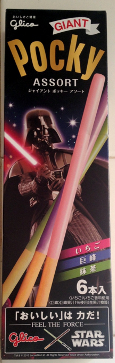 The best Pocky? Star Wars Pocky. In both regular size and Giant, these Pocky make great standins for lightsabers.