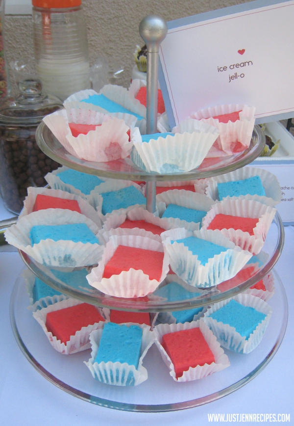 I fondly remember this Ice Cream Jell-o because just the idea of ice cream plus Jell-o sounds intriguing. By stirring in ice cream, it will magically float to the top of the Jell-o all on it’s own. With absolutely no work on your part you’ll get a creamy, Jell-o concoction that looks great on any party table!