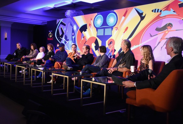 Craig T. Nelson (“Bob Parr / Mr. Incredible”), Holly Hunter (“Helen Parr / Elastigirl”), Samuel L. Jackson (“Lucius Best / Frozone”), Bob Odenkirk (“Winston Deavor”), Catherine Keener (“Evelyn Deavor”), Sophia Bush (“Voyd”), Sarah Vowell (“Violet Parr”), and Huck Milner (“Dash Parr”), were joined by director Brad Bird, producer Nicole Grindle, and producer John Walker.