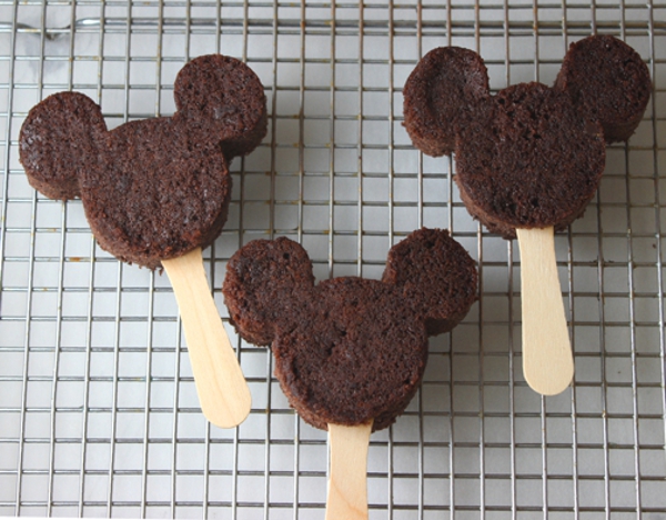 Once the cake has cooled use a Mickey Mouse cookie cutter to cut out pieces of cake.