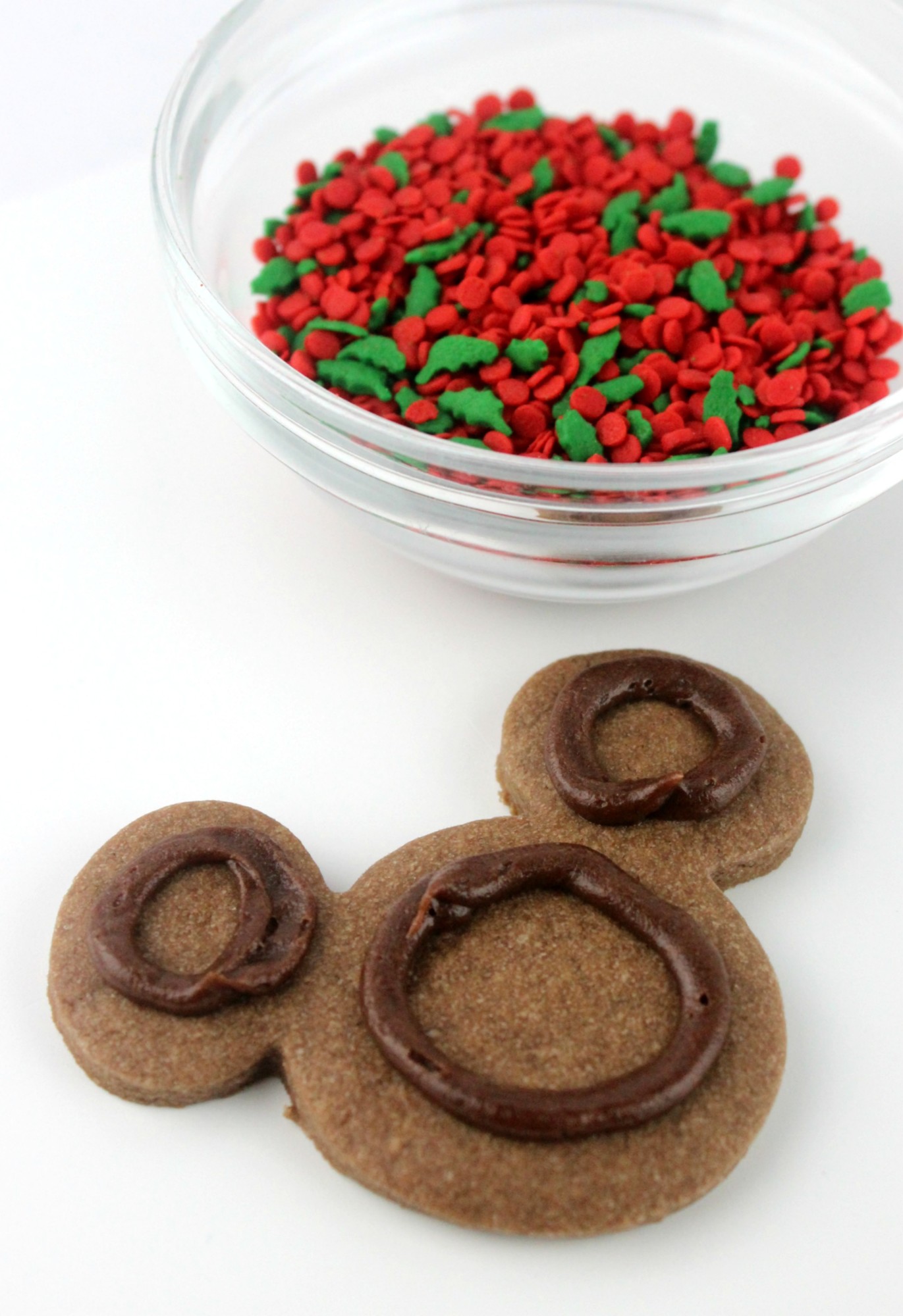 A plain Mickey Mouse-shaped cookie cutter is cute as-is but when I added some simple piping and a few festive sprinkles, a holiday treat was born!