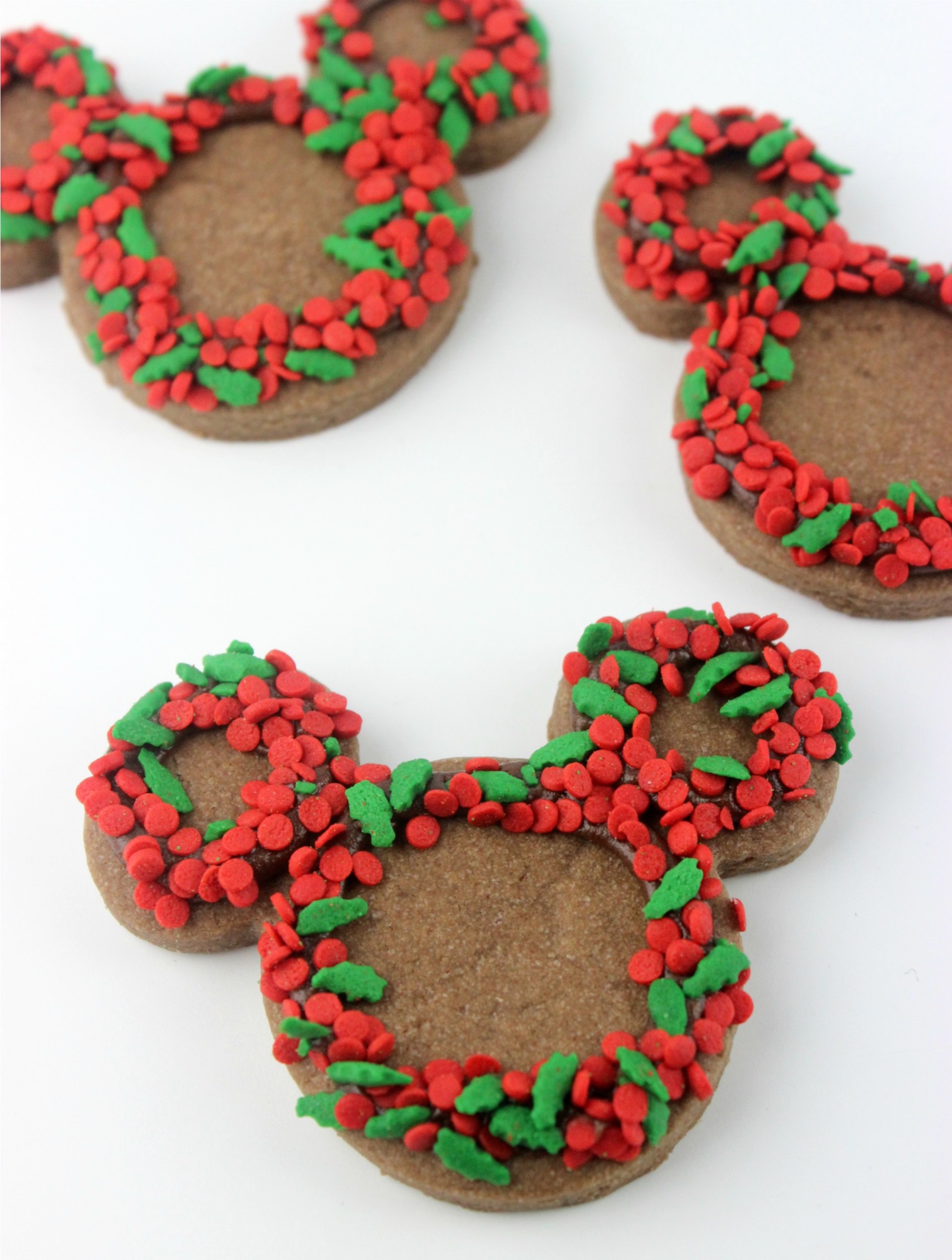 Add these simple, fun, Mickey Wreath Cookies to your holiday baking!