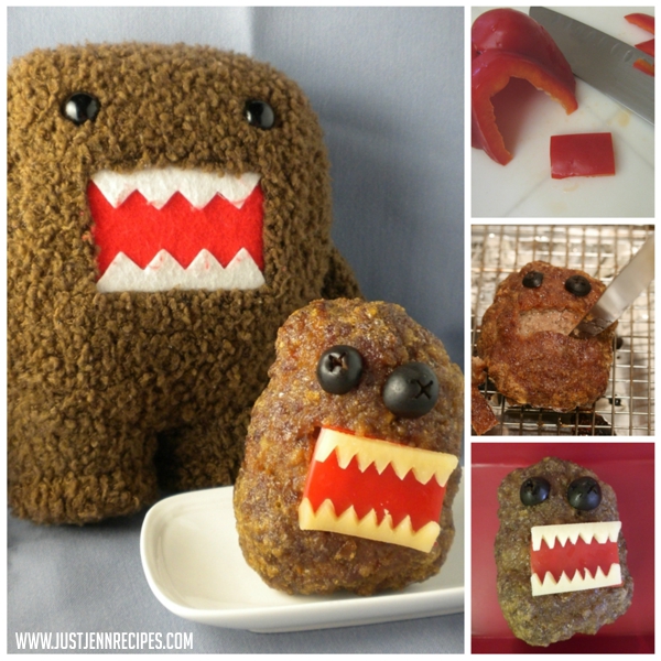 So now it seems it makes perfect sense to go savory and make deliciously cute little Domo meatloaf! A fun way to make dinner little more entertaining.