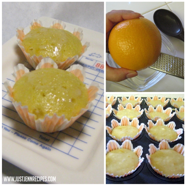 Instead of going with a typical lemon flavor, I thought orange would be light and citrus-y. With just a touch of vanilla glaze, these mini cupcakes are the perfect size to pop in your mouth…one…after the other…