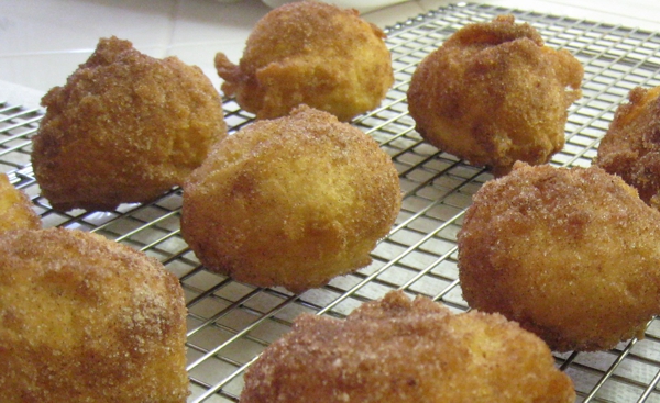 Once the dough floats, fry for a few minutes on each side until golden brown. Let drain slightly on a wire rack and while the donuts are still hot, roll in the cinnamon sugar mixture. Serve immediately.