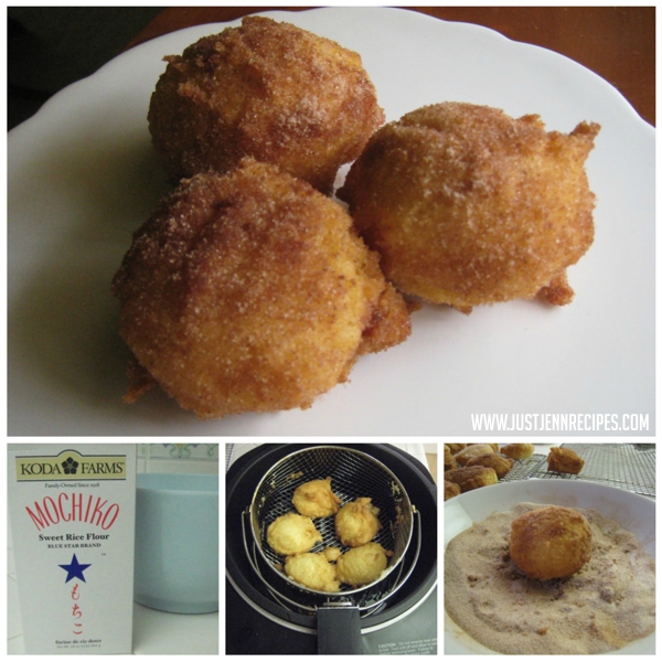 These are similar to ‘dango’ which is a fried dough that is sold at church carnivals but those are plain, whereas these? These are sweet and full of cinnamon sugar flavor like little pillows you’ll want to rest your head on and dream of mochi all night long…