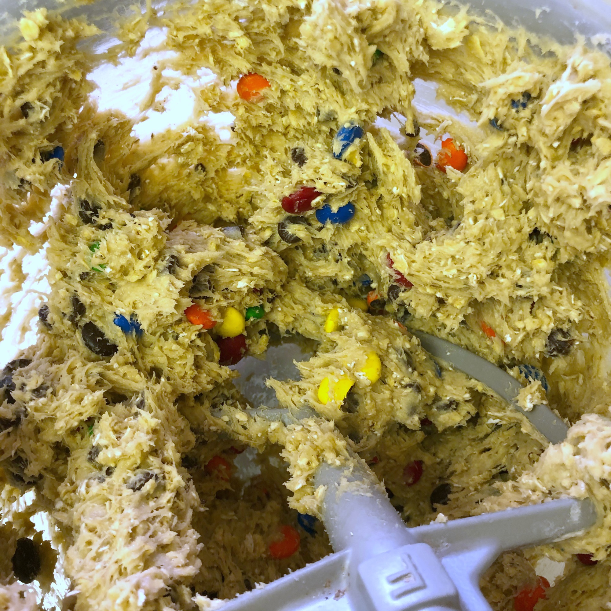 Monster cookies are filled with oats, chocolate, and candy but traditionally, they also have peanut butter or some sort of peanut butter candy. But when coming up with recipes for people dealing allergies, sometimes you have to change things up. This still has more than enough flavor and candy to go around, and you won’t miss a thing.