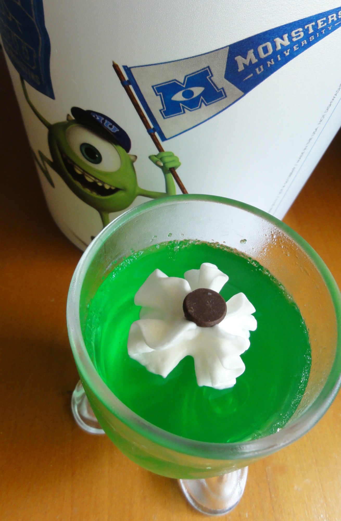 To serve, decorate with a dollop of whipped cream and a chocolate chip for Mike’s eye.
