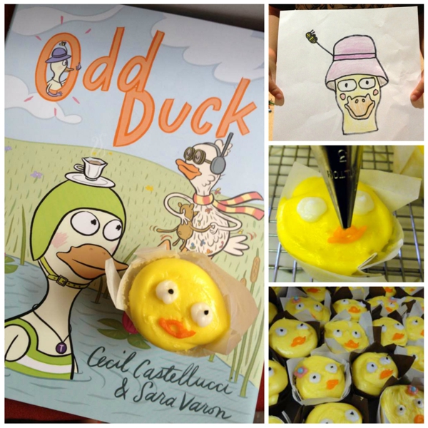 Cecil had a book release party at one of my favorite stores, Skylight Books in Silver Lake (recap here) where fans and kids filled the store to listen to her read the book. As with her last book signing, I made Theodora and Chad duck cupcakes to celebrate! Unique and fun duck cupcakes for all Odd Ducks of the world to enjoy!