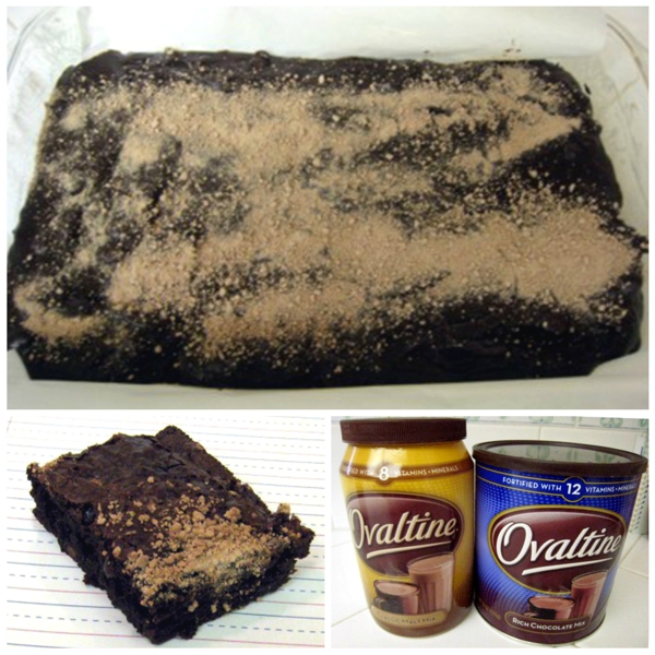 Pour into the prepared pan the evenly sprinkle the Ovaltine on top.