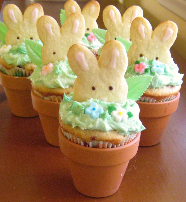 These ended up looking fabulous on the buffet table and everyone from kids to adults couldn’t wait to dig in to the holiday treats. Peeking bunnies cookies definitely got everyone into the Easter spirit and terra cotta pots made the cupcakes unique and fun to serve!