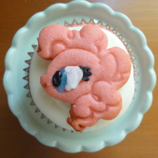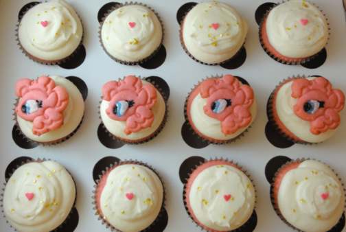 I was asked to make cupcakes, “any type I wanted” as long as they were pink. You don’t have to tell me twice, pink brings to mind one thing to me and that’s ponies, specifically Pinkie Pie!