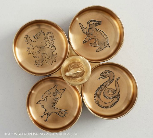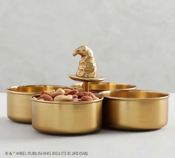 The gold Sorting Hat server is also stunning, especially if a Hogwarts themed party is on your agenda. A cool detail are the four Hogwarts houses represented at the bottom of each receptacle.