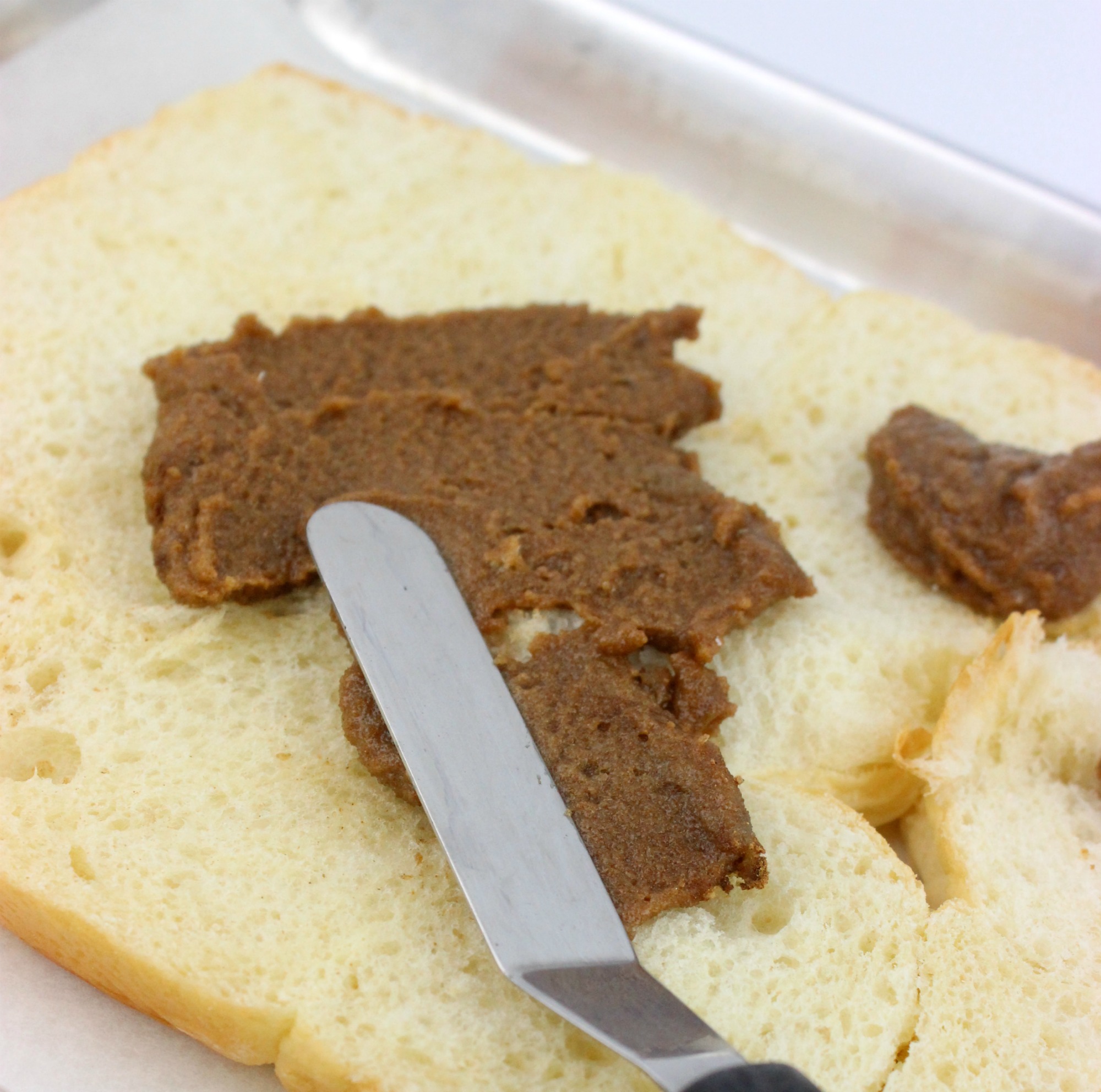 Step 3: In a small bowl stir together the butter, brown sugar, cinnamon, and salt. Spread the mixture onto the bottom half of the sliced rolls. Place the top half of the rolls on top.