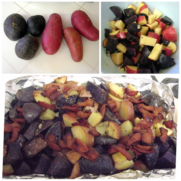 Potatoes and bacon go hand in hand, the flavor can’t be beat. Oven roasting the potatoes was an easy choice to showcase the colorful spuds. Getting kids interested in ingredients and cooking will make them eager to be adventurous in their meals!