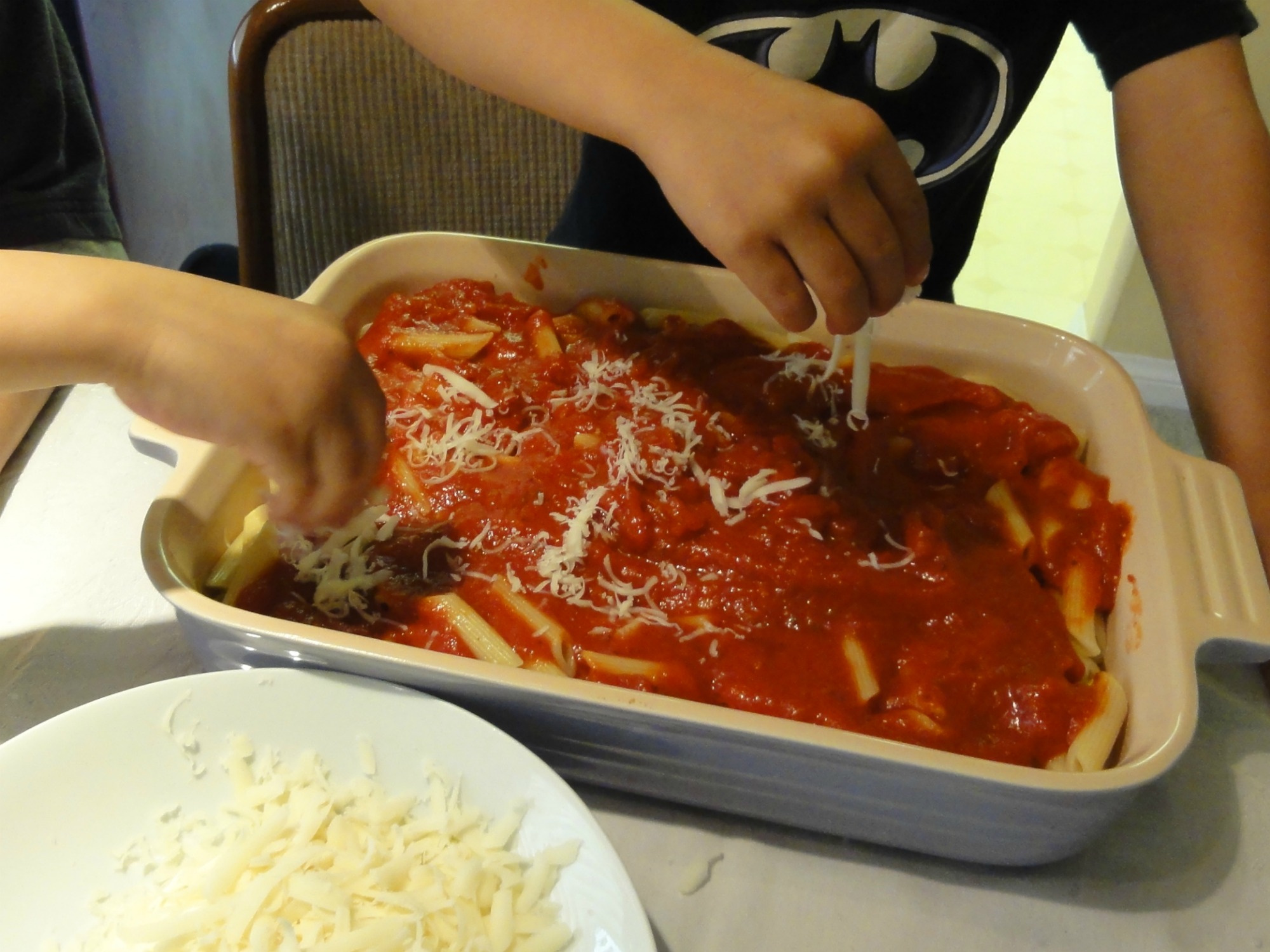 A nice warm tray of pasta, there’s nothing like it. And if you get all the components together you can get your kids in on the action!