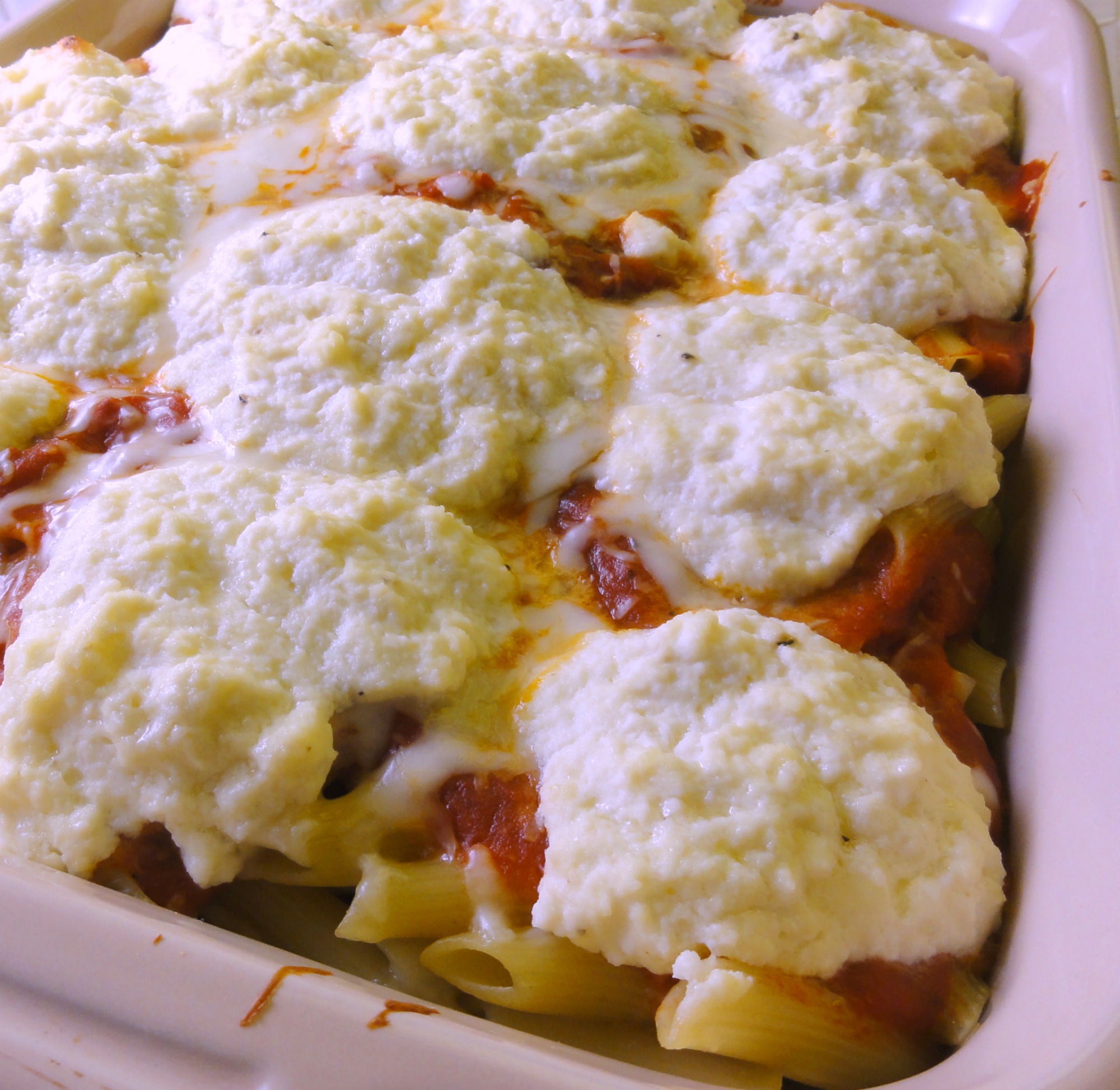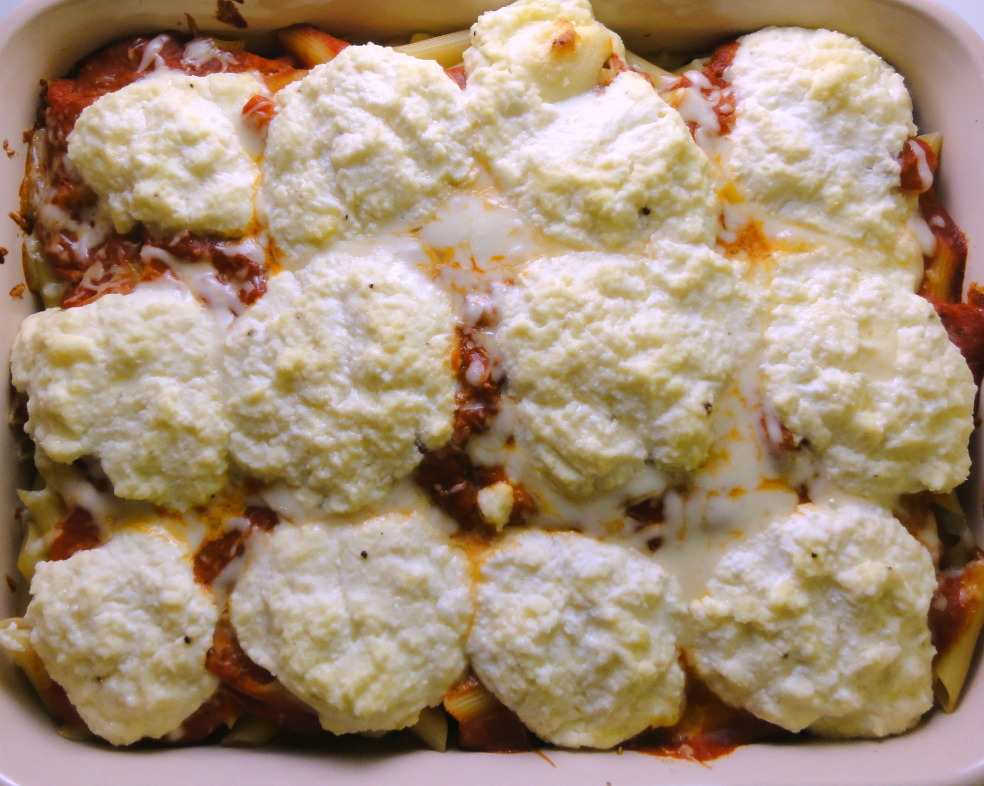 Step 6: Drop the ricotta by dollops almost like biscuits, on top of the penne.