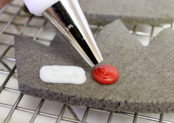 Use a #5 tip for both the white and red icings to create the button details on the hats. Add heart sprinkles, if desired.