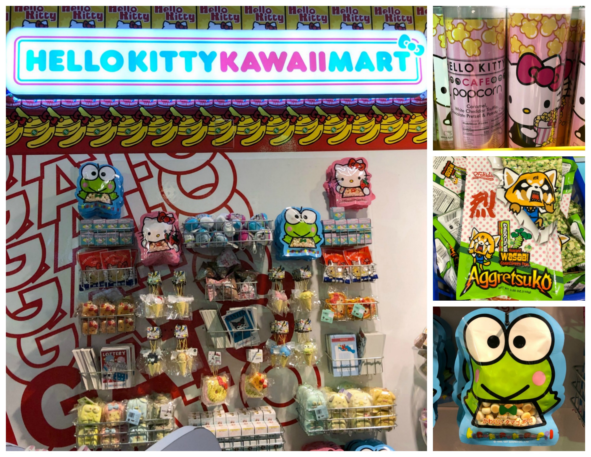 In the Hello Kitty Kawaii Mart you’ll find snacks galore from around the world: cookies, candies, and drinks all make for the perfect souvenir for fans.