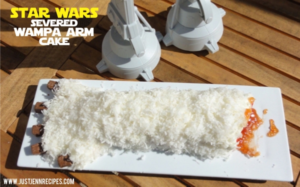I have a lot of Star Wars recipes on this blog but nothing will compare to this, a severed Wampa arm made out of cake! There’s nothing more celebratory than an edible severed arm. At least in the Star Wars universe.
